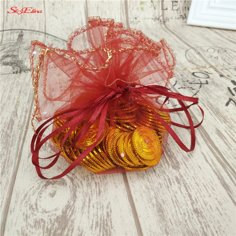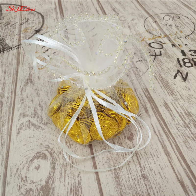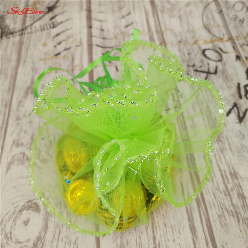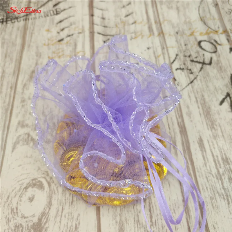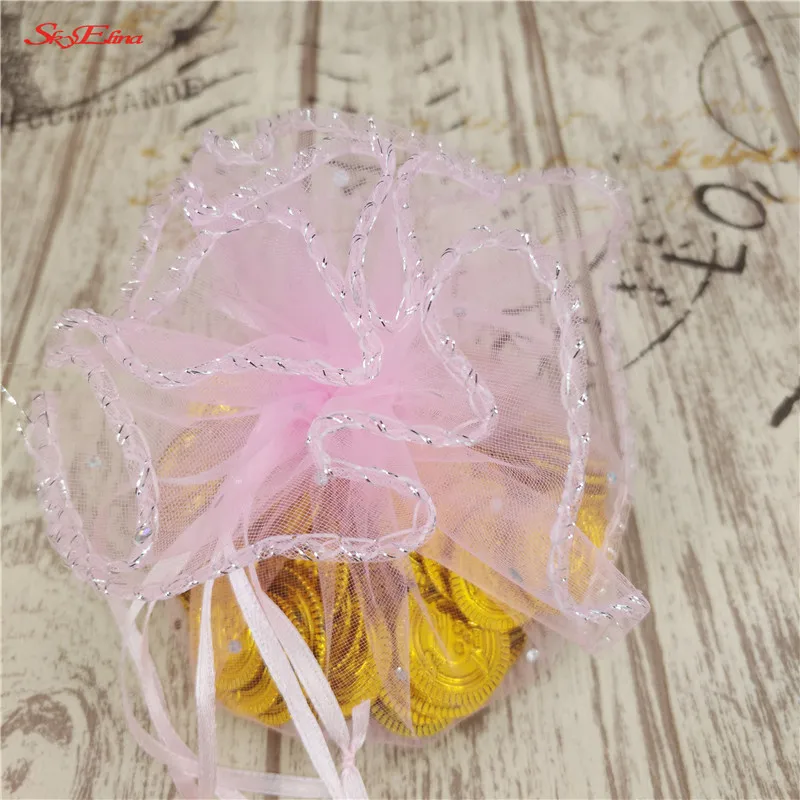 10/50/100Pc 26/35CM Wedding Favors And Gifts Round Organza Bag Jewelry Pouches Gauze Element Drawable Bag Wedding Party