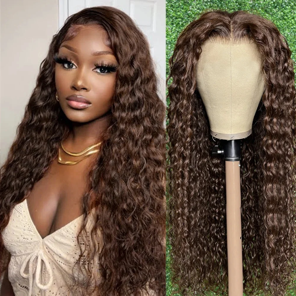 13x4 Brown Curly Lace Front Human Hair Wig HD Transparent Deep Wave 13x6 Lace Frontal Wig Glueless Human Hair Wigs Pre Plucked