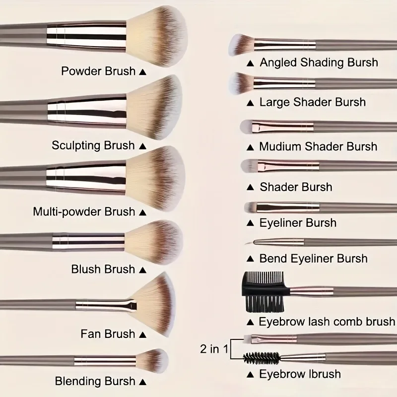 ✔ Multiple Size Options: Choose from 10/15/18/20-piece sets (list exact brushes in each set, e.g., "Includes powder brush, angled liner, smudger, etc.")
