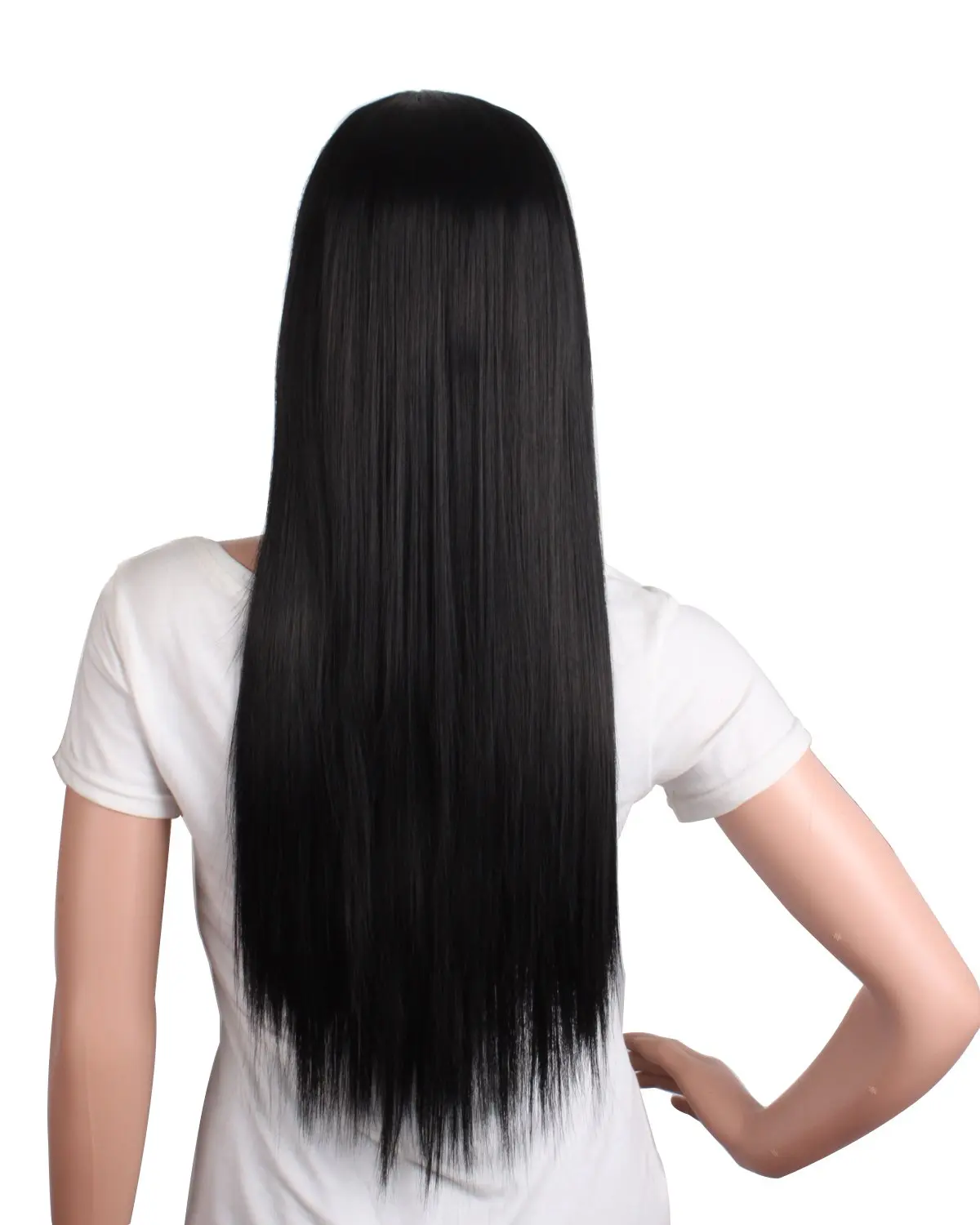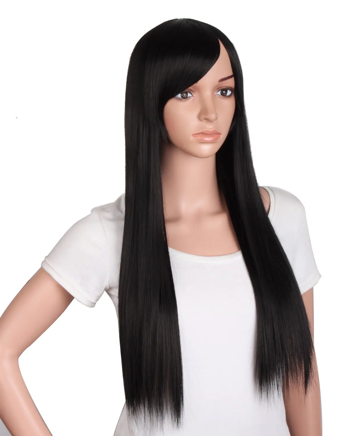 28" / 70cm Beautiful Synthetic Women's Bangs Long Straight Wigs Women Black Grils Party Cosplay Wigs