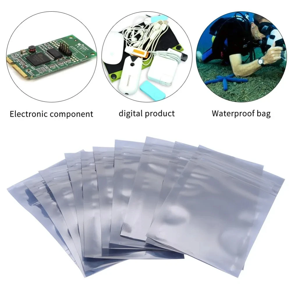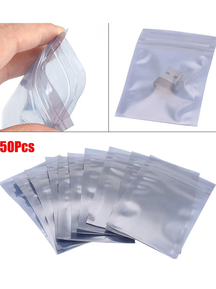 50Pcs Aluminum Antistatic Bag Resealable Anti Static Ziplock Bags Pouch Anti Static Package Mylar Bags for Electronic Pouches