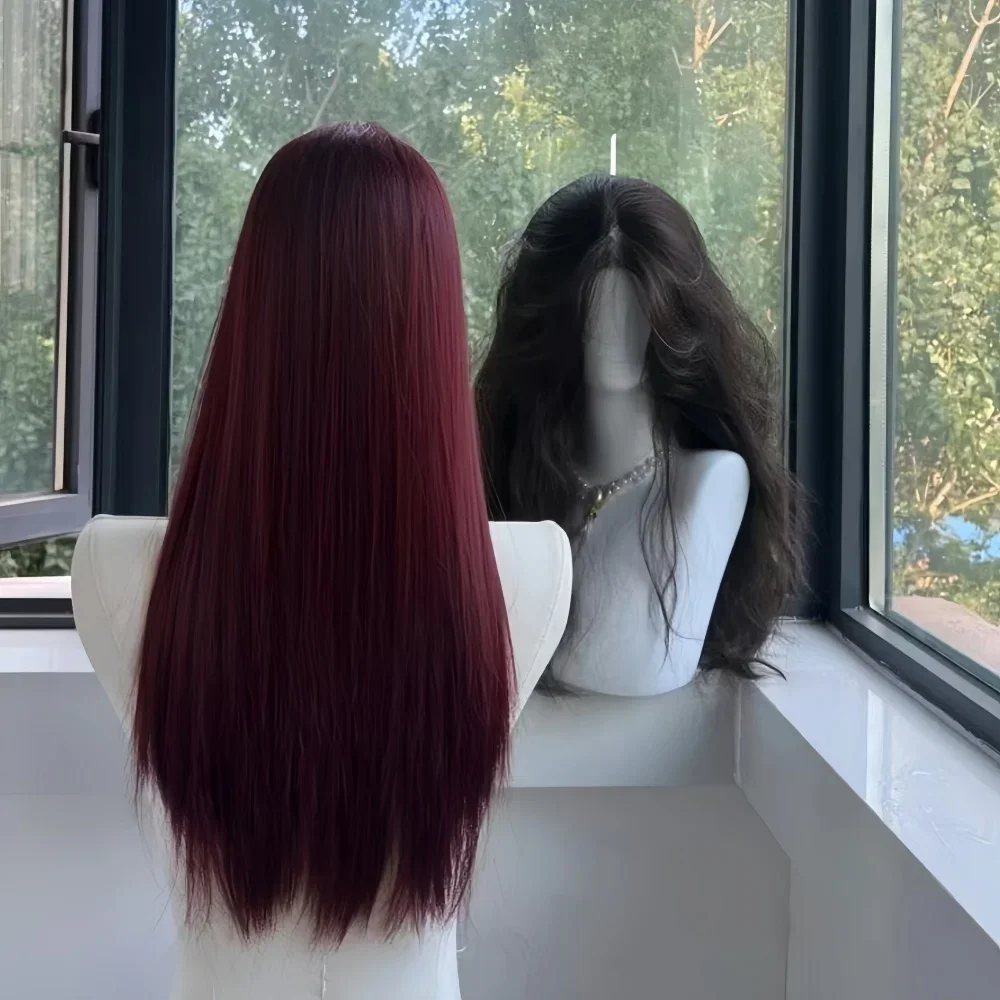 Black Synthetic Wig With a Feminine Charm. Long Straight Hair In The Middle Part. Natural Full Head Cover For Daily Cosplay