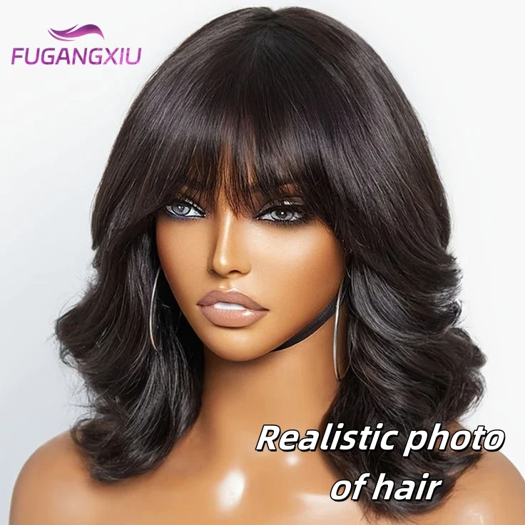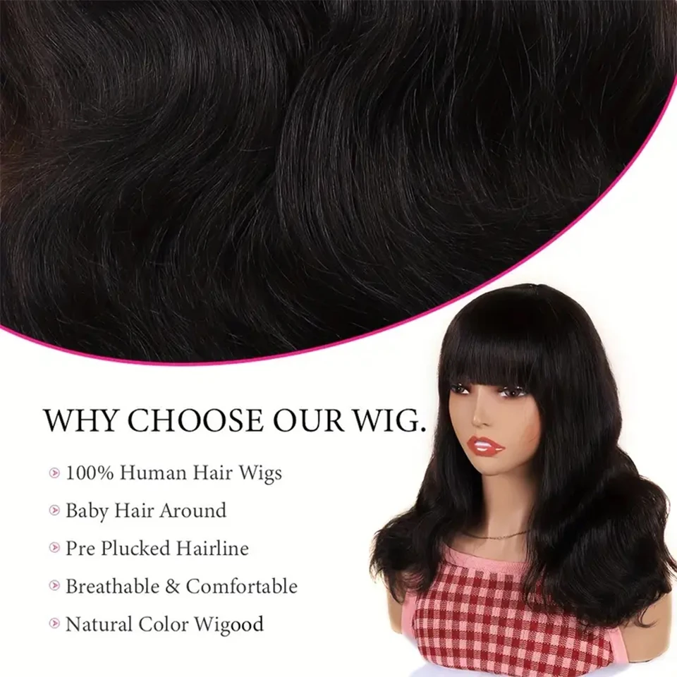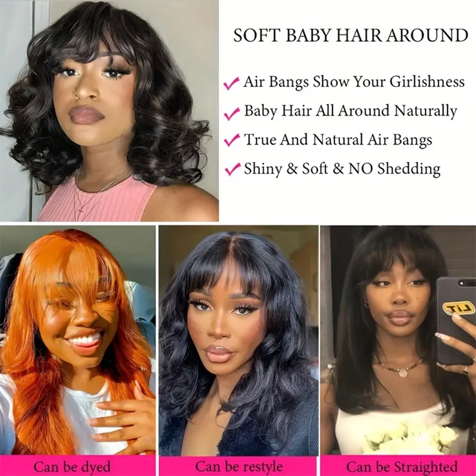 Body Wave Wigs With Bangs Brazilian Human Hair Wig With Bangs For Women Glueless Wear and Go Machine Made Wig Short Bob Wig Sale