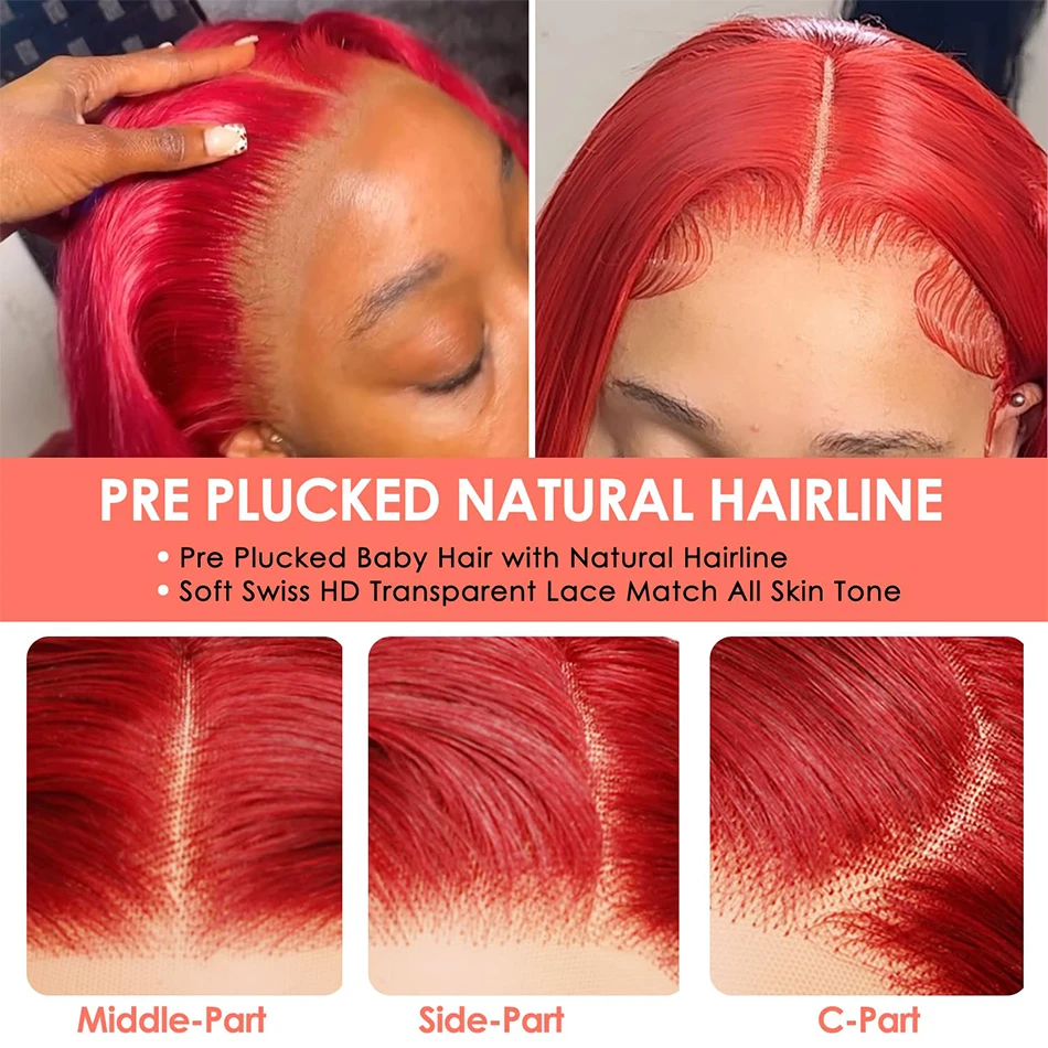 Bone Straight Hot Red Wig 13x4 13x6 Hd Lace Front Wigs Human Hair 30 40 Inch Brazilian Red Straight Lace Front Wig For Women