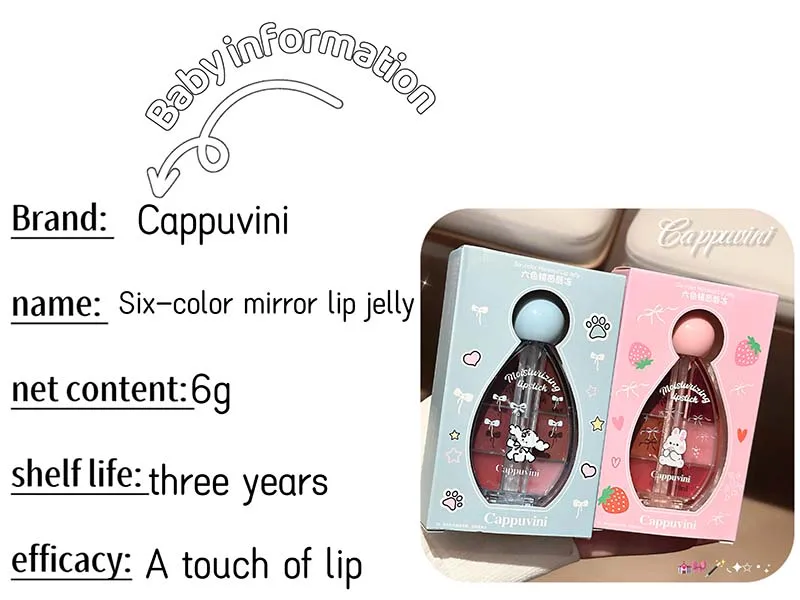 Cappuvini Six Colors Water Light Lip Gloss Moisturizing Easy to Coloring Lip Glaze Makeup Lipstick