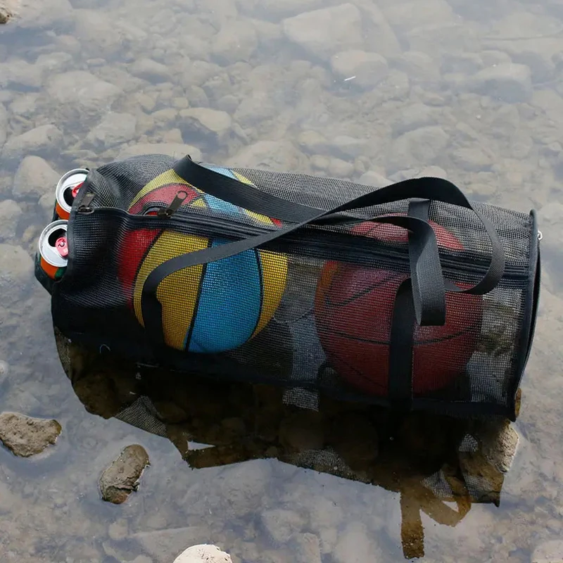 Sports bag with mesh design in the middle to keep ventilated, drawstring closure design for easy opening and closing