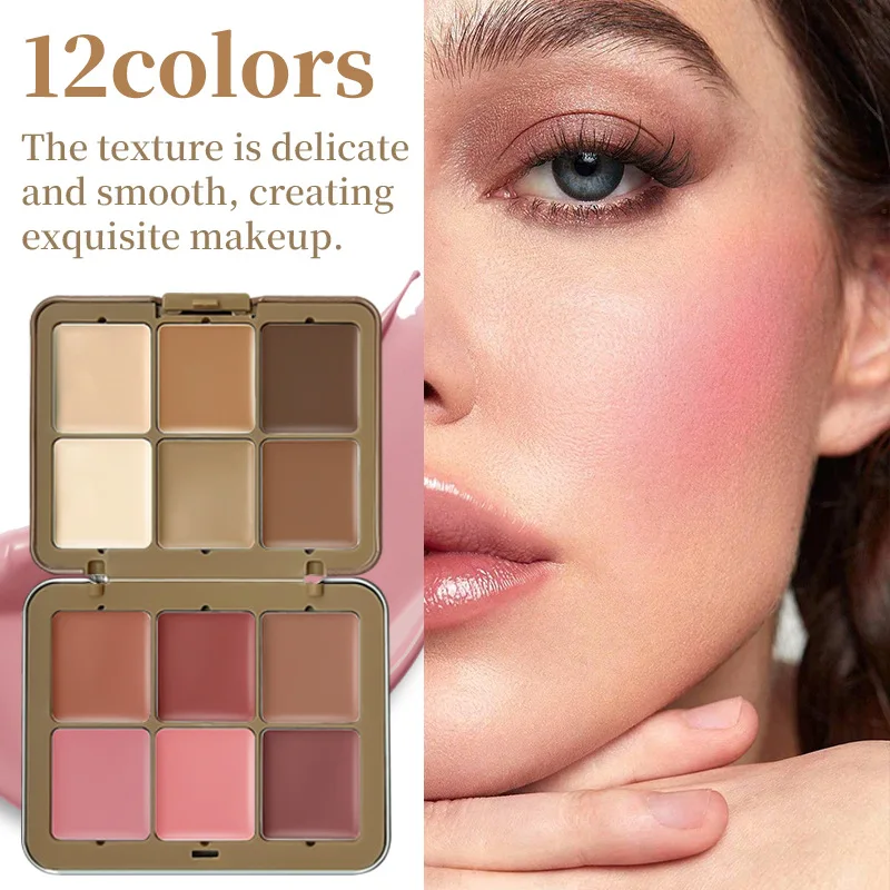 Contour and Highlighter Palette Makeup BlushMulti-Color Cream Blush Plate12 Colors Creamy Blush Palette Concealer Plate