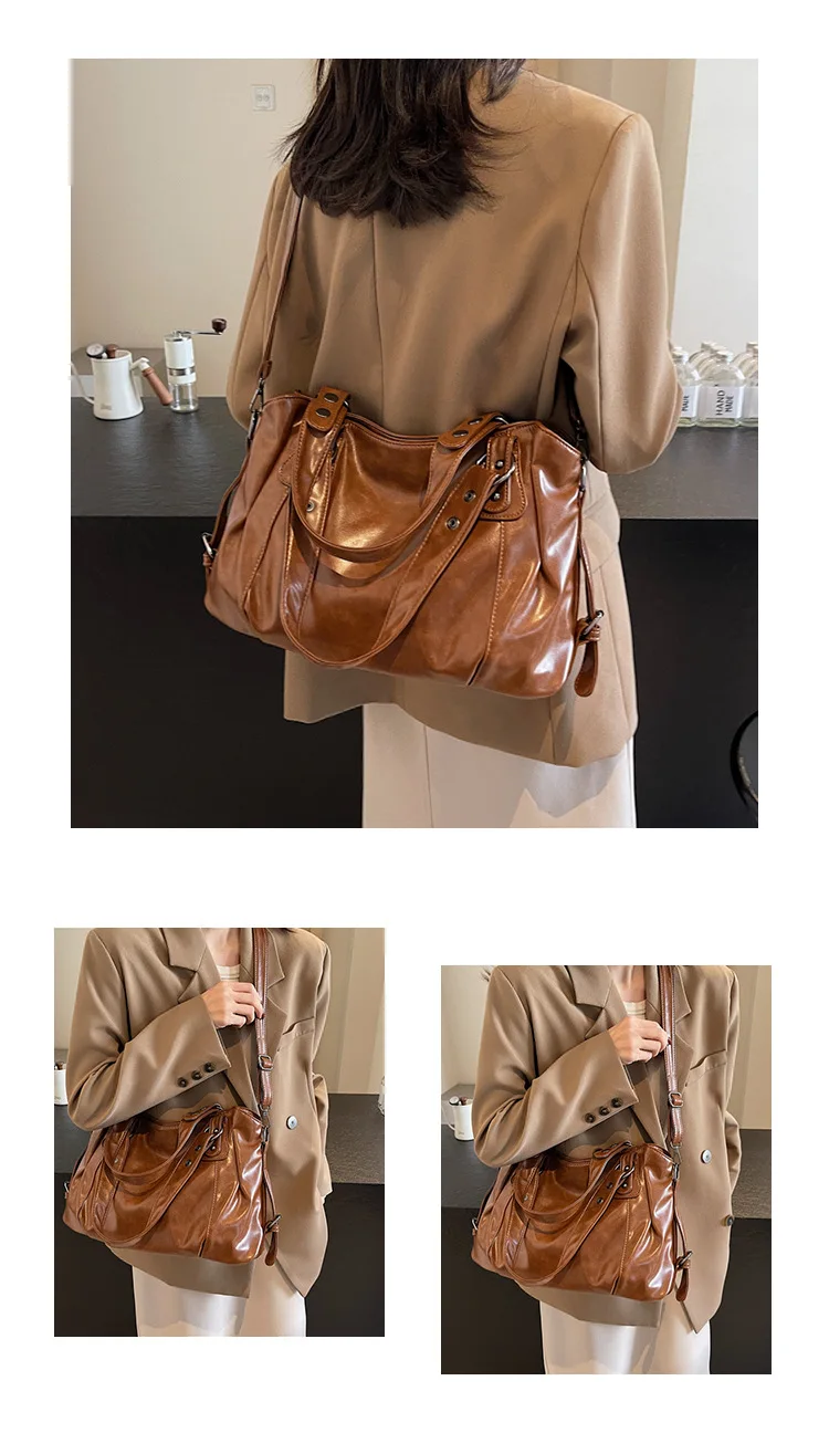 Fashion Classic Versatile Large Capacity Shoulder Bag Soft Commuter Retro Handbag Pu Leather Ladies Tote Bags Women Shopping Bag