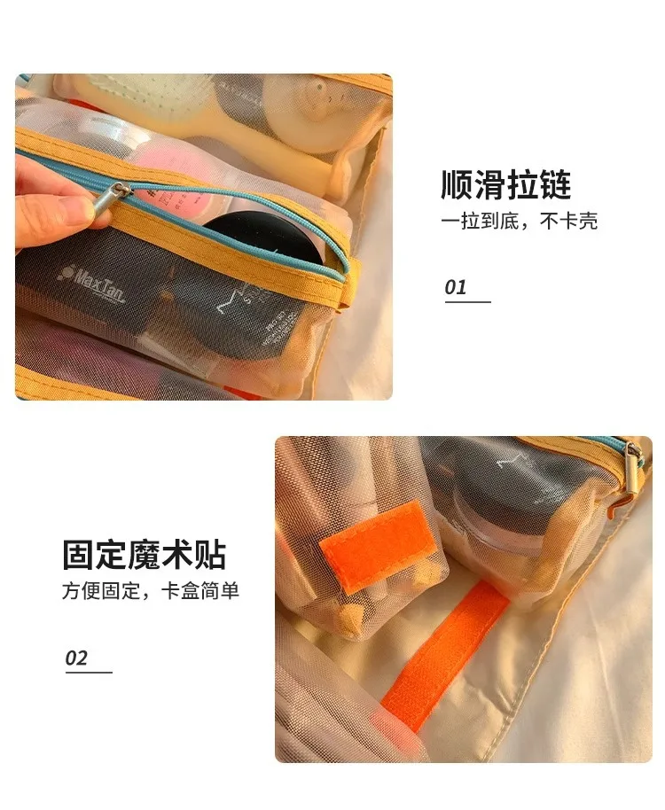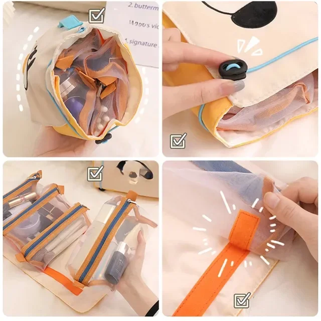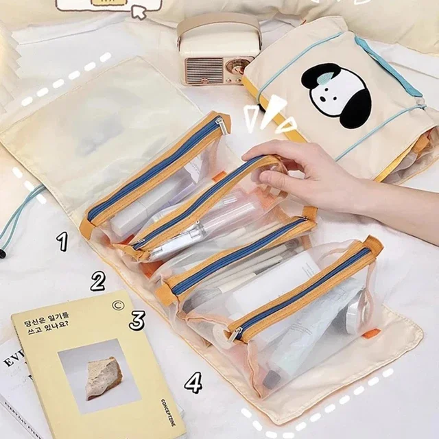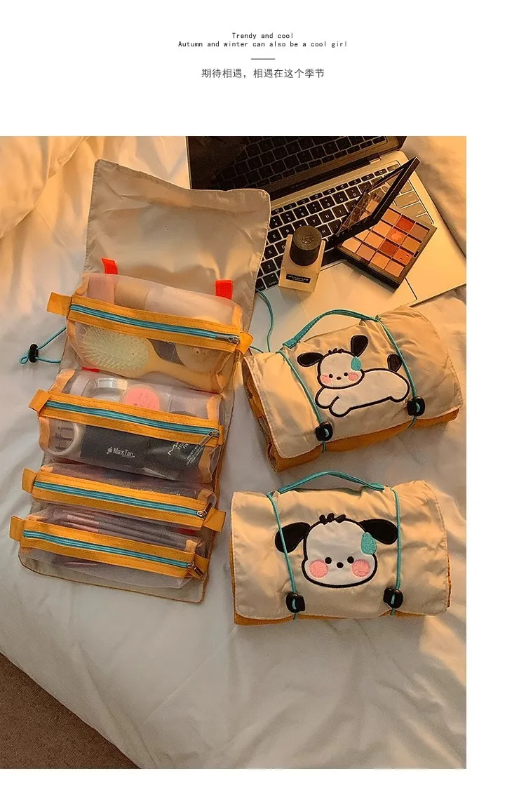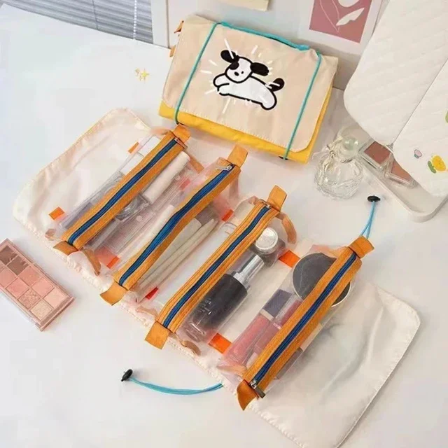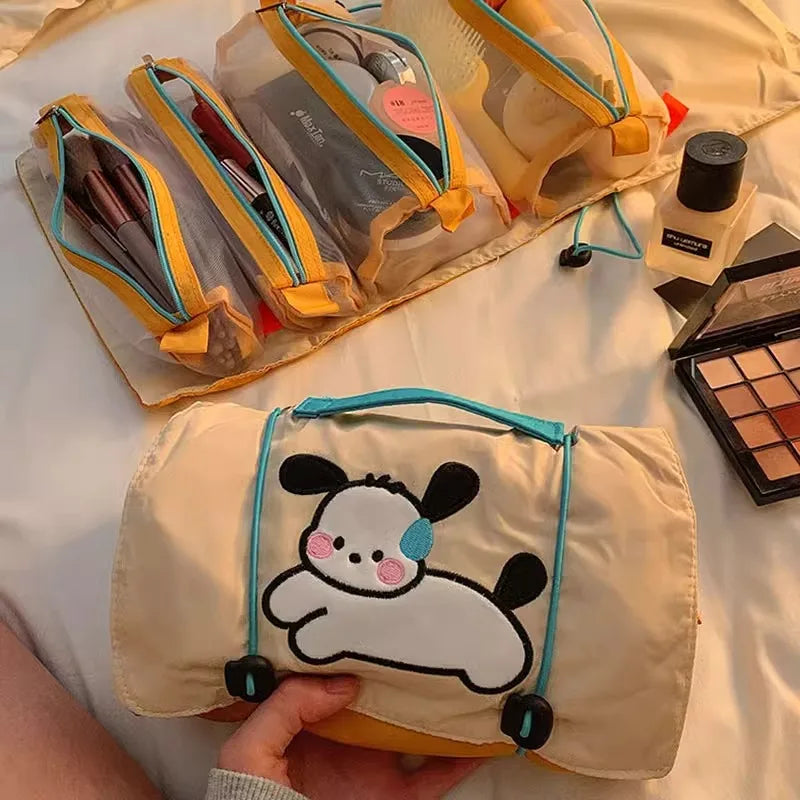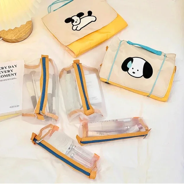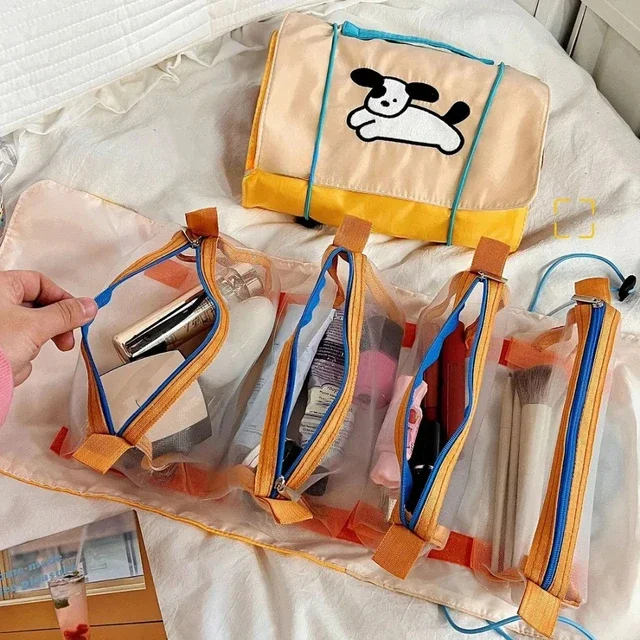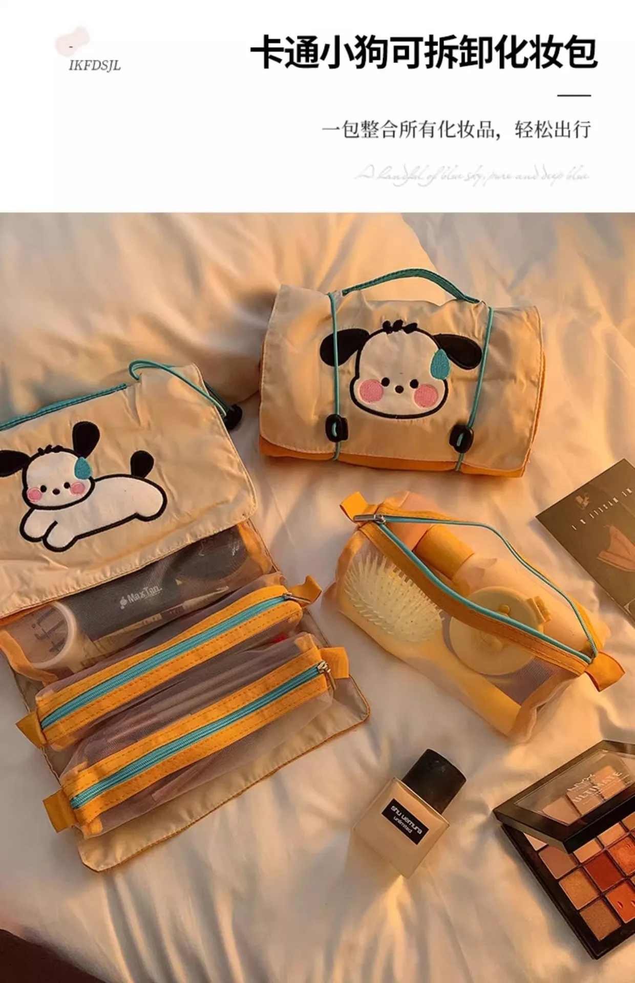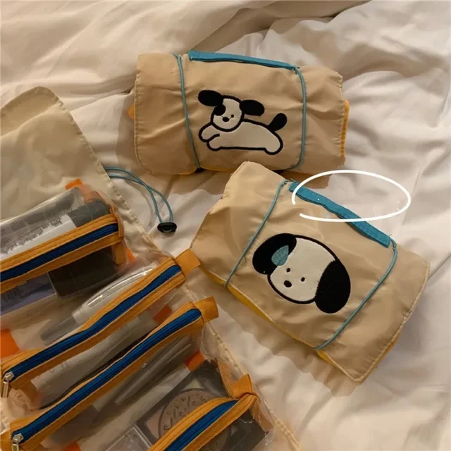 Foldable Cartoon Dog Cosmetic Bag Drawstring Portable Detachable Storage Bag Mesh Four-in-One Travel Toiletry Bag Travel