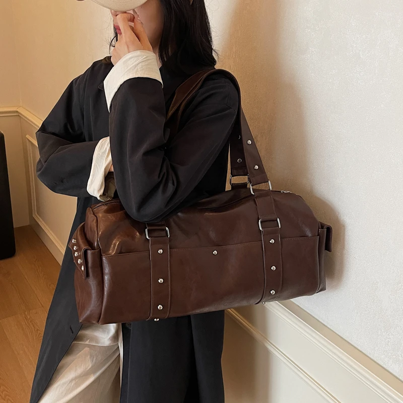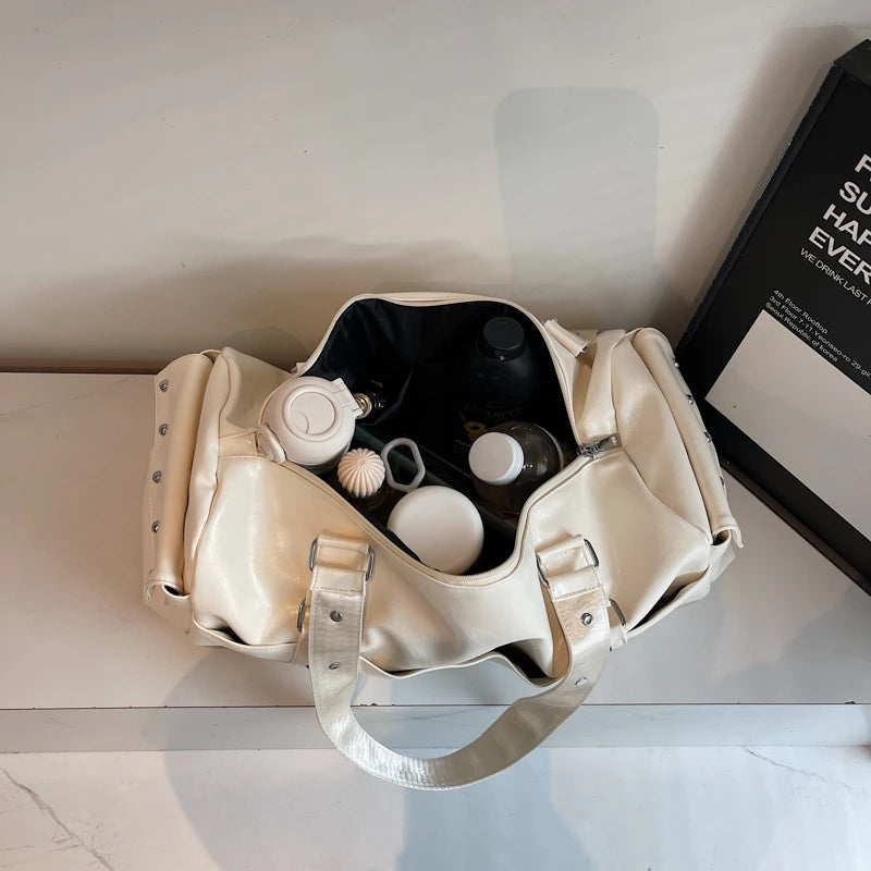 Gym Bag, Outdoor Travel Storage Backpack, Leather Material, Multiple Compartments, Suitable for Both Men and Women