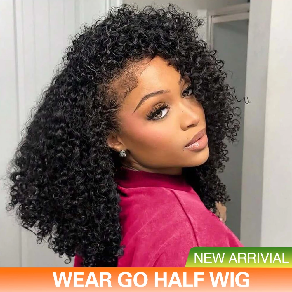 Half Wig Kinky Curly Human Hair Wigs 250% Curly Wigs 100% Human Hair No Leave Out Upgrade Glueless Clip In Half Wigs For Women