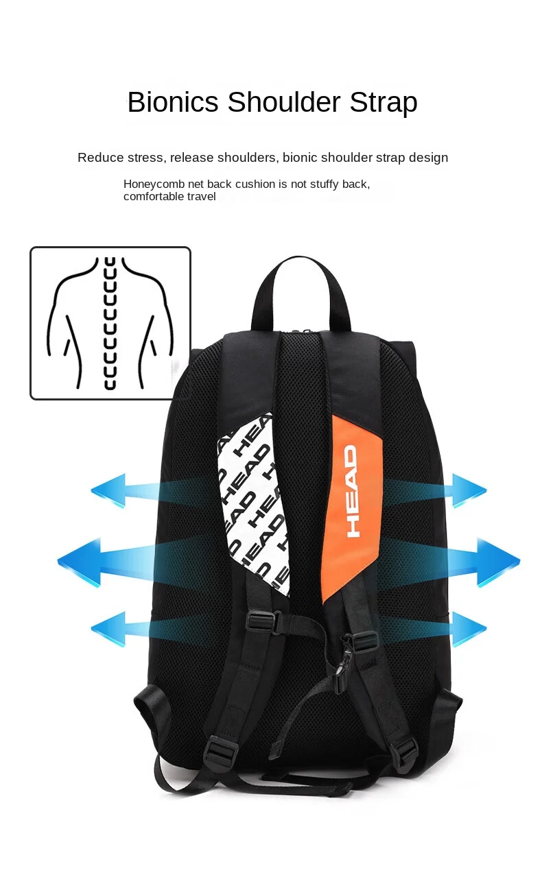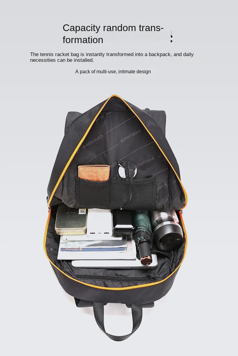 HEAD Original Foldable Tennis Backpack Multifunctional Large Capacity Sports Badminton Bag Holds Up 2 Rackets Bag for Women Men