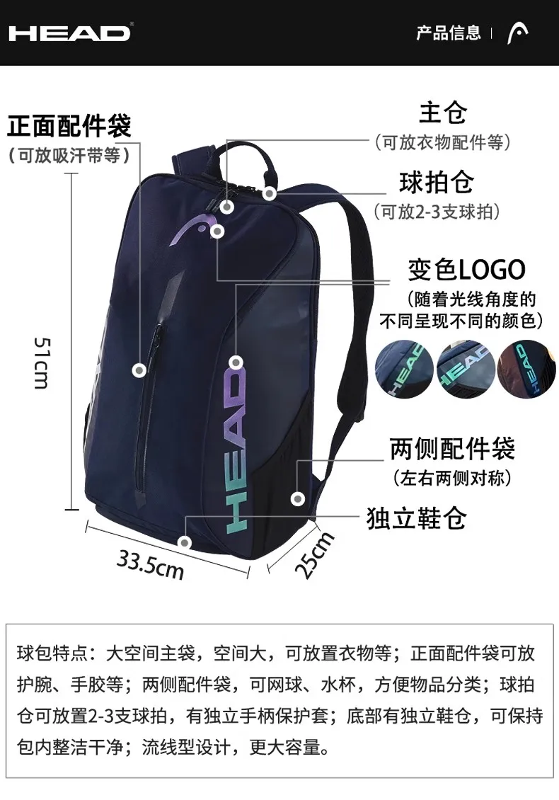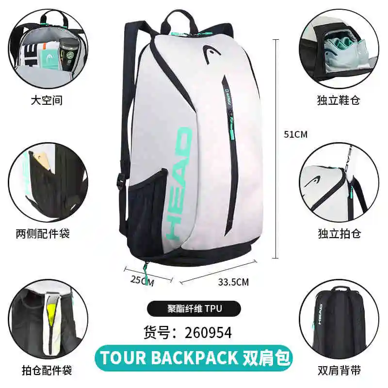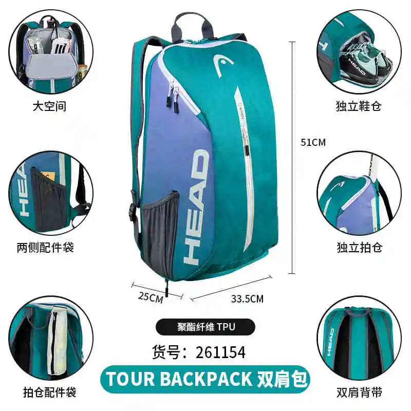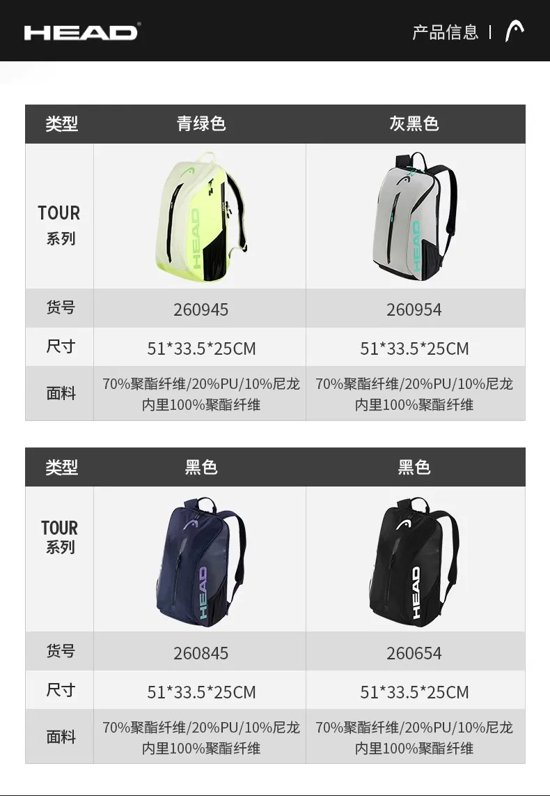 HEAD Tour Team Tennis Racket Backpack Tennis Bag Male Multifunctional Sports Bag Female Tenis Padel Racket Bag Badminton Genuine