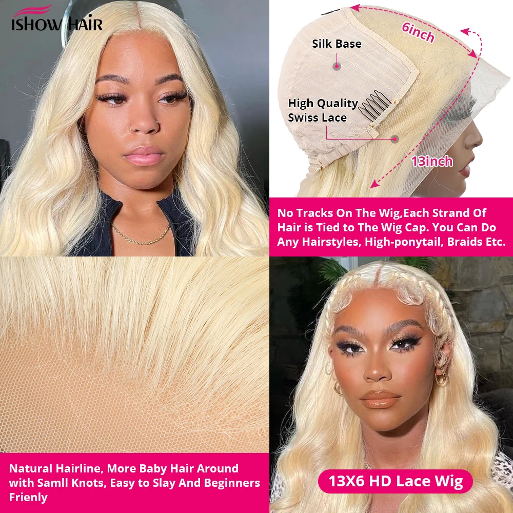 Ishow 613 Full Lace Human Hair Wig Body Wave Blonde Lace Front Wig Brazilian Human Hair 30 inch 13x4 Lace Frontal Wig For Woman