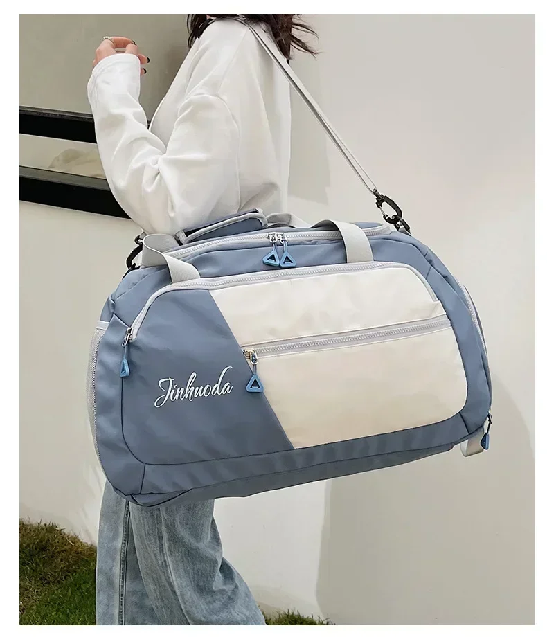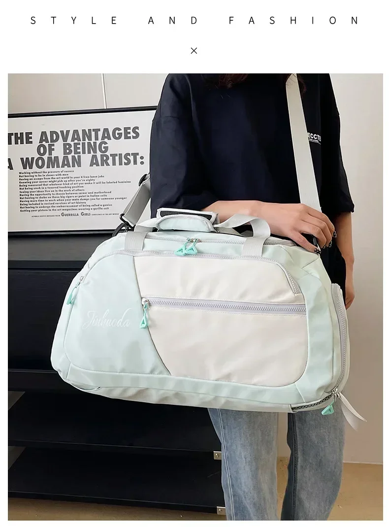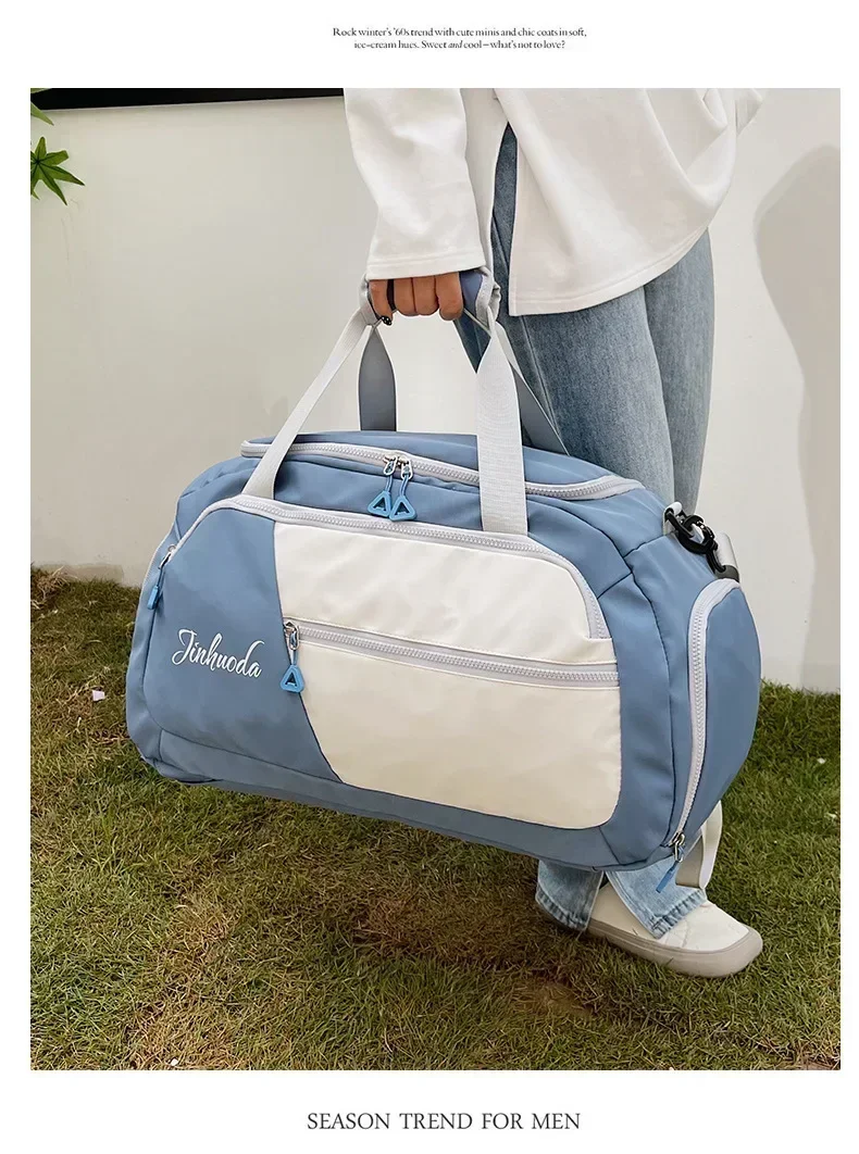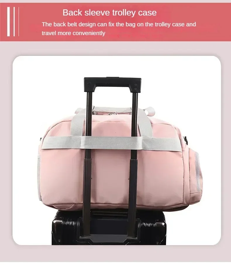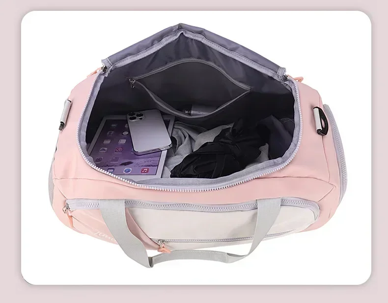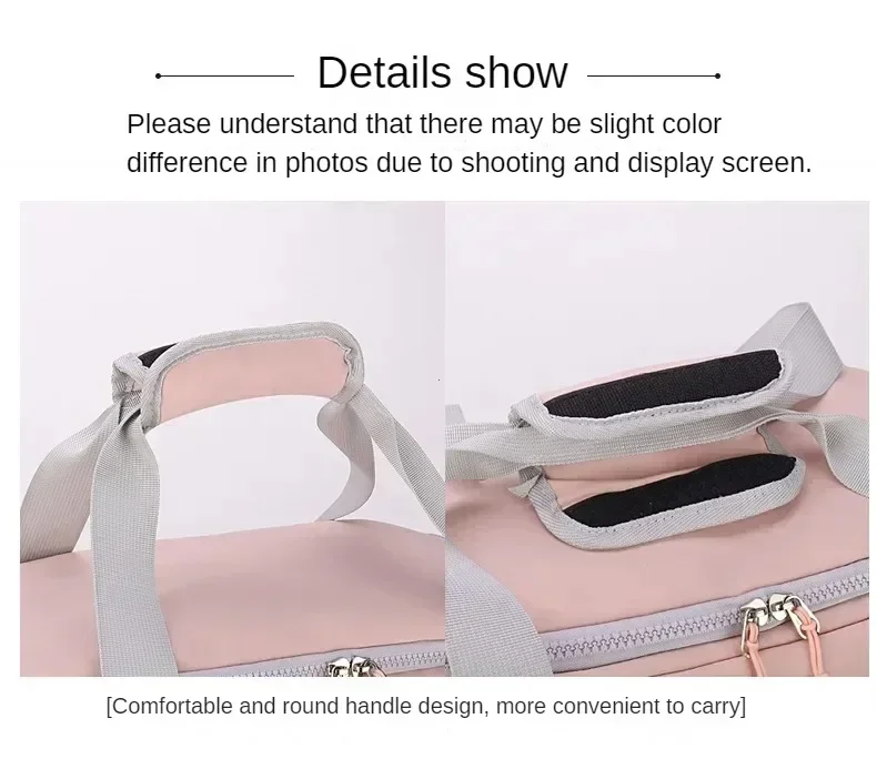 3. Spacious Capacity: With its surprising large capacity and well-divided interior pockets, this luggage clothing storage bag can accommodate all your essentials for sports and travel. The bag features a separate zippered compartment for storing wet clothes, allowing you to keep them separate from dry items. It's easy to clean, and even if the interior is damp, a gentle wipe with a dry towel will make it dry.