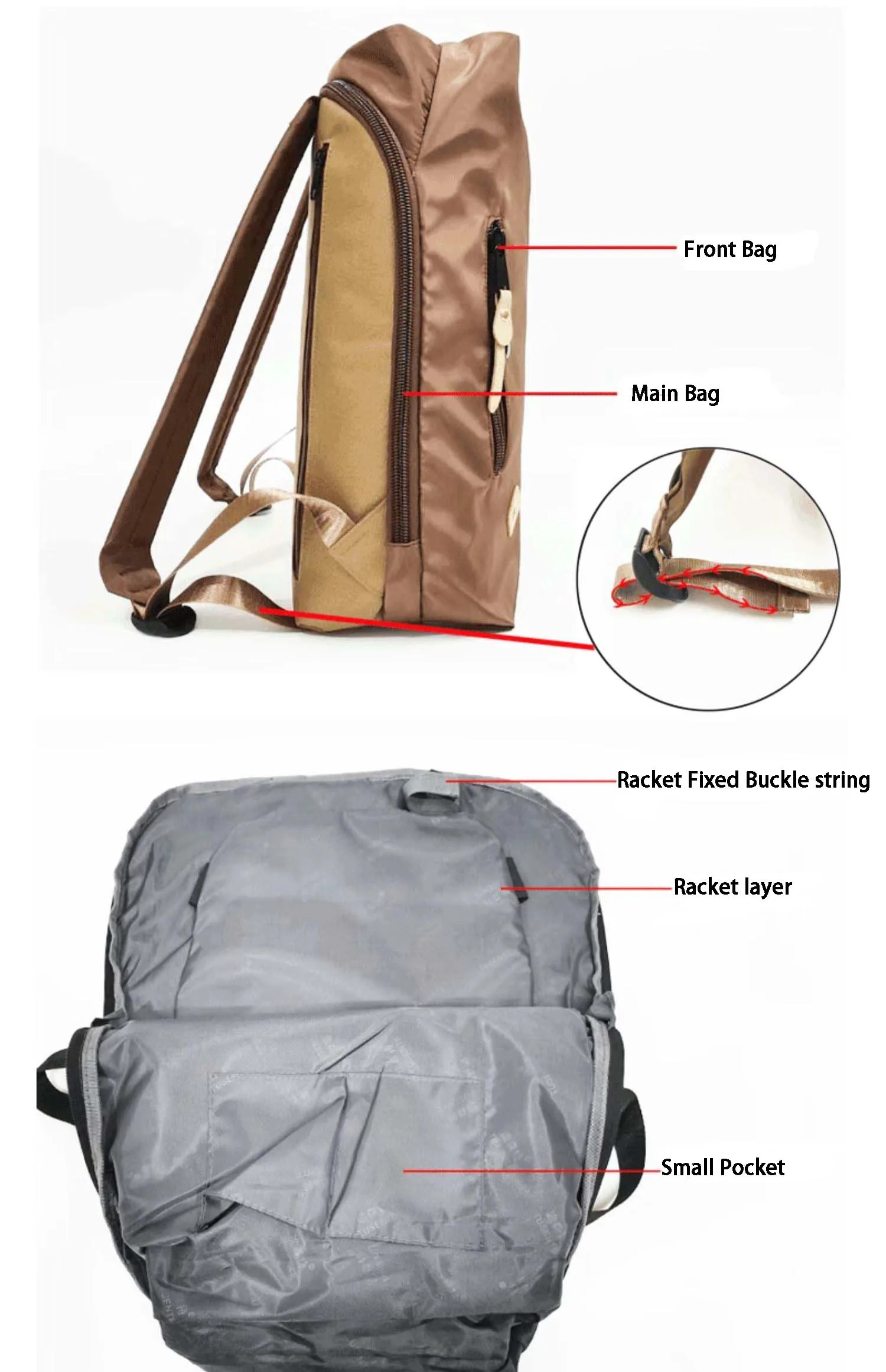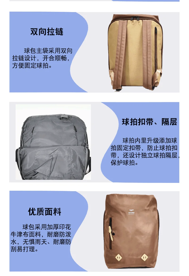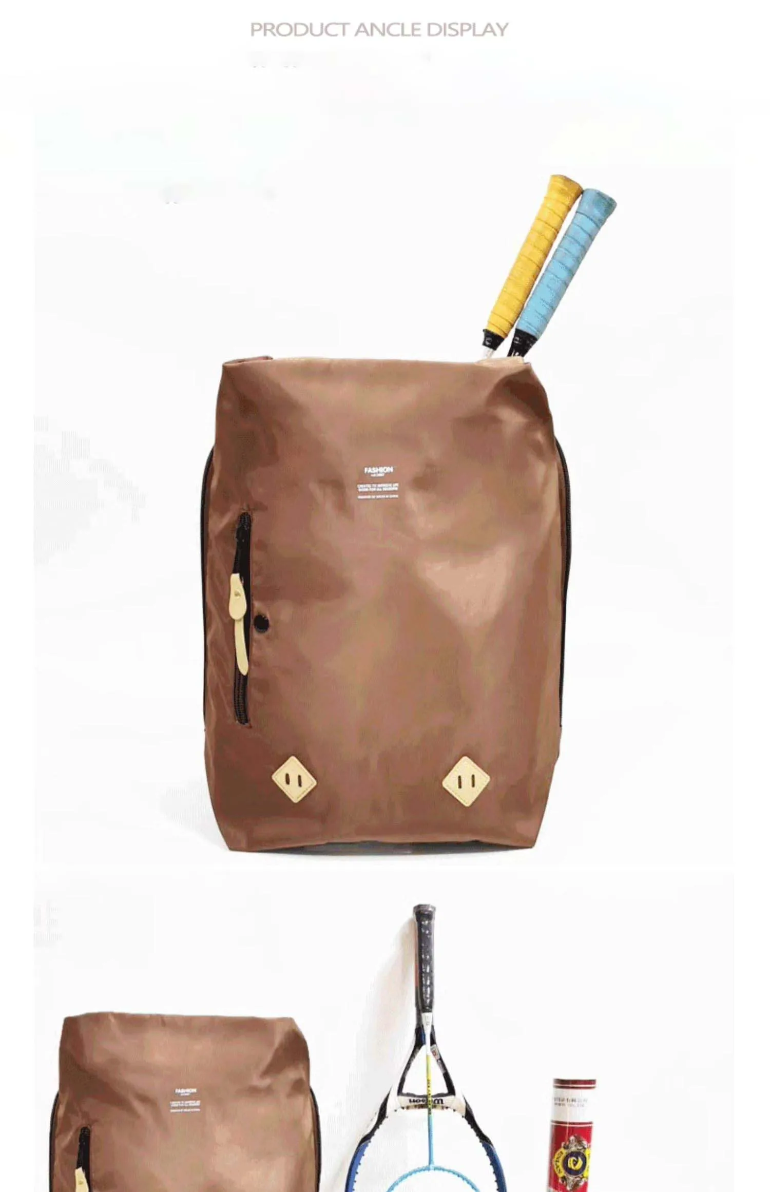 Nylon Fabric Backpack Dual Shoulder Bag for Tennis, Basketball, and Badminton with Built-In Racket Straps, Simple Travel Bags