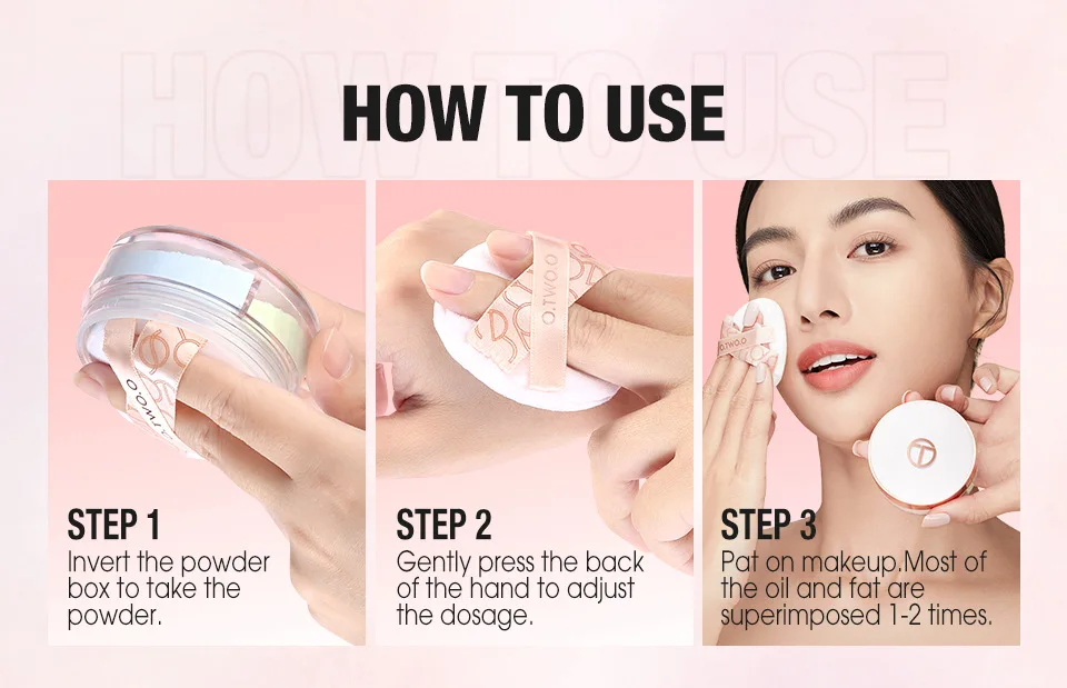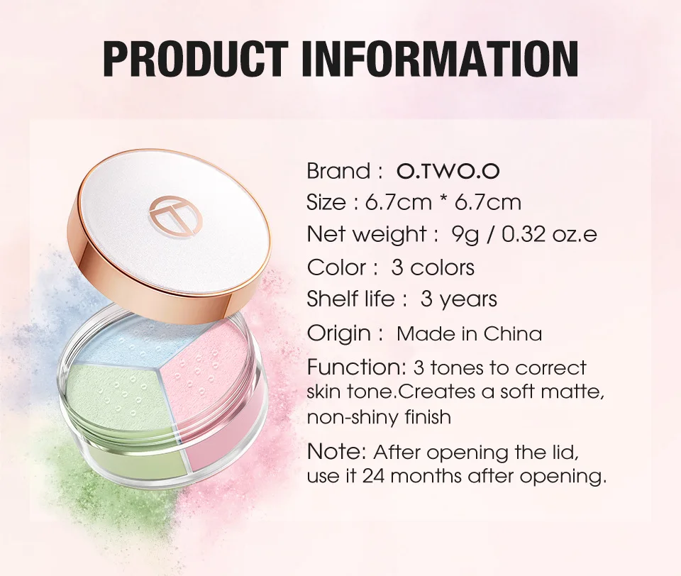 O.TWO.O 3 Color Loose Powder Hides Oil Pores Face Powder Blend Naturally Setting Powder Fix Lock Makeup Matte Finishing Powder