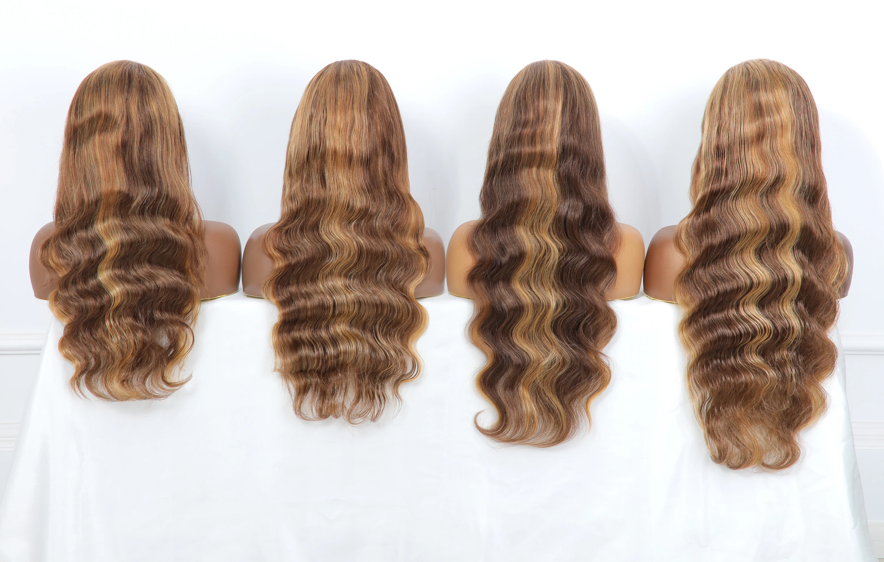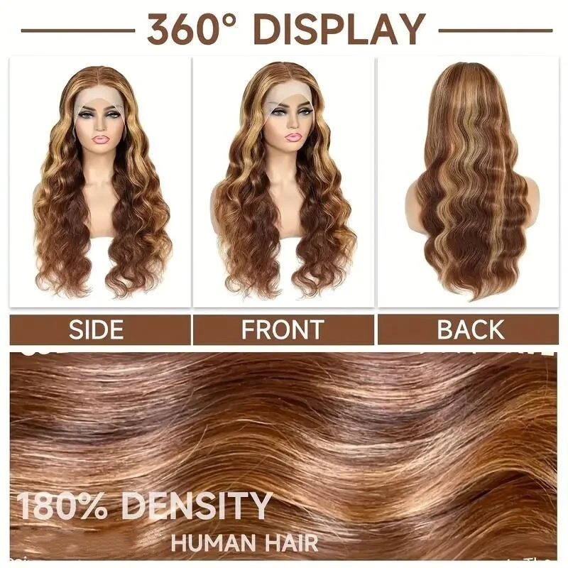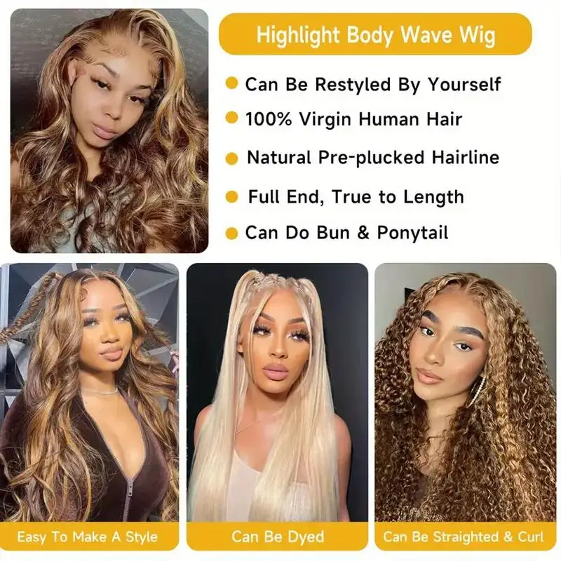 Peruvian Body Wave Highlight 13x4 Lace Front Wigs Human Hair Wigs For Women 4/27 Ombre Honey Blonde Body Wave Wigs Human Hair