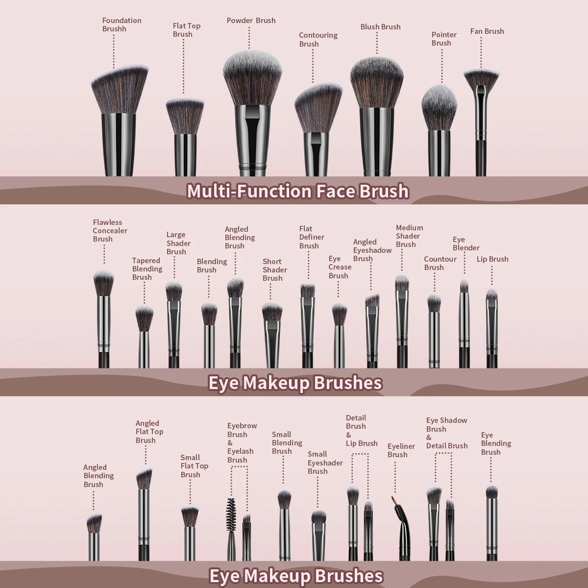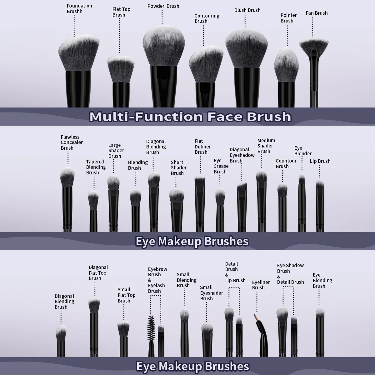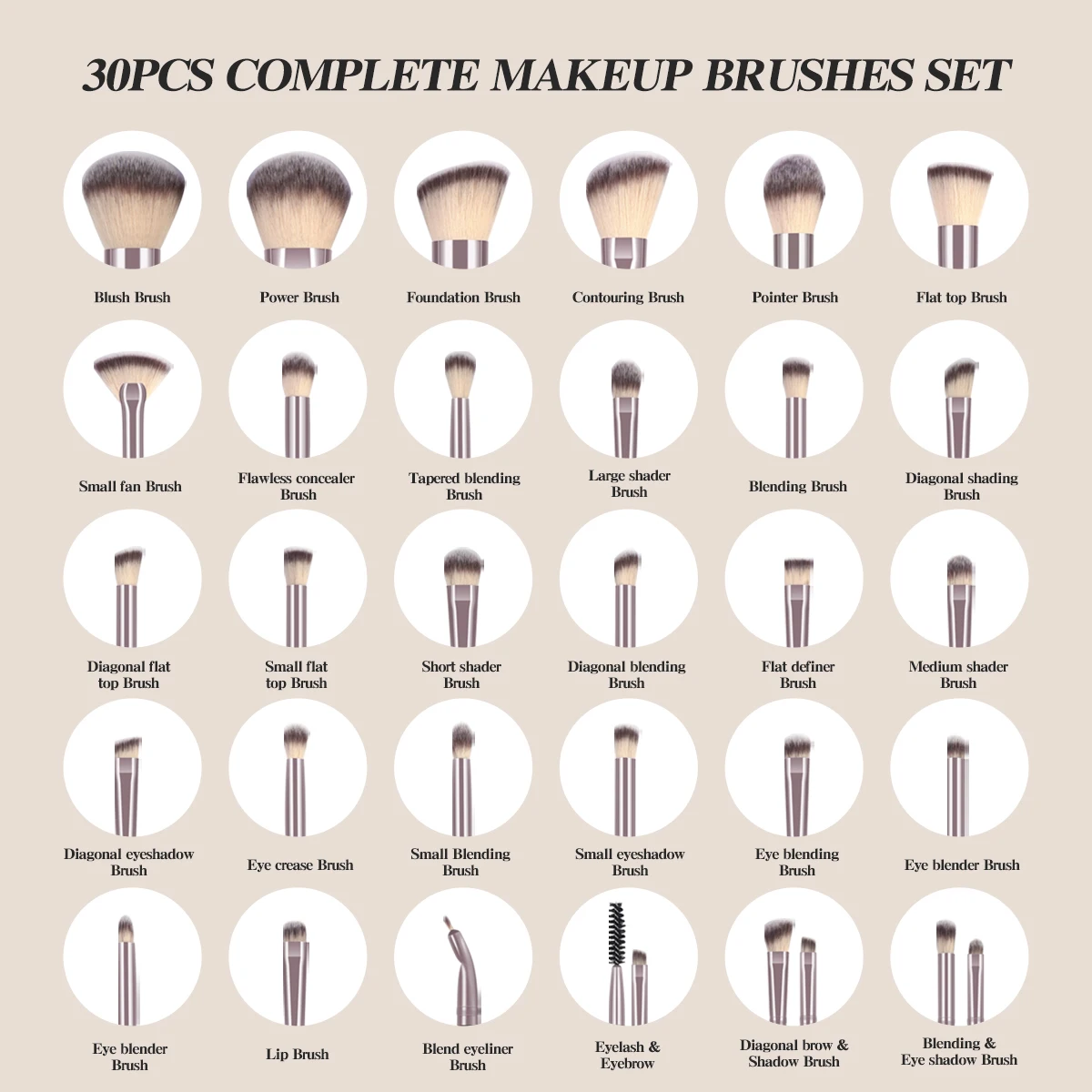 Professional Makeup Brush Set 30pcs Foundation Concealers Eye Shadows Powder Blush Blending Brushes Beauty Tools with Bag Kit