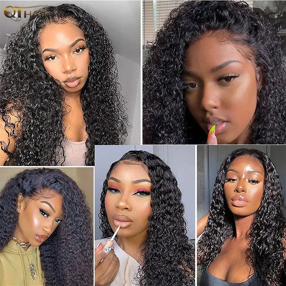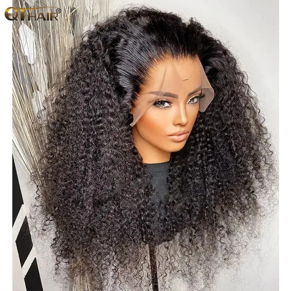 QT Afro Kinky Curly Lace Front Wigs 13x4 HD Transparent Human Hair Lace Wig Brazilian Curly 4x4 Lace Closure Wig For Black Women