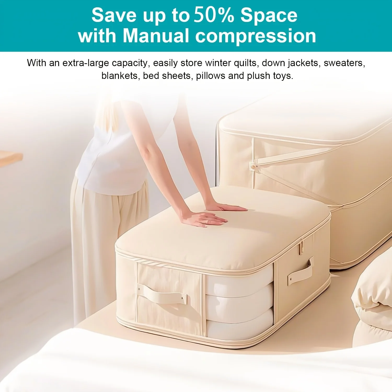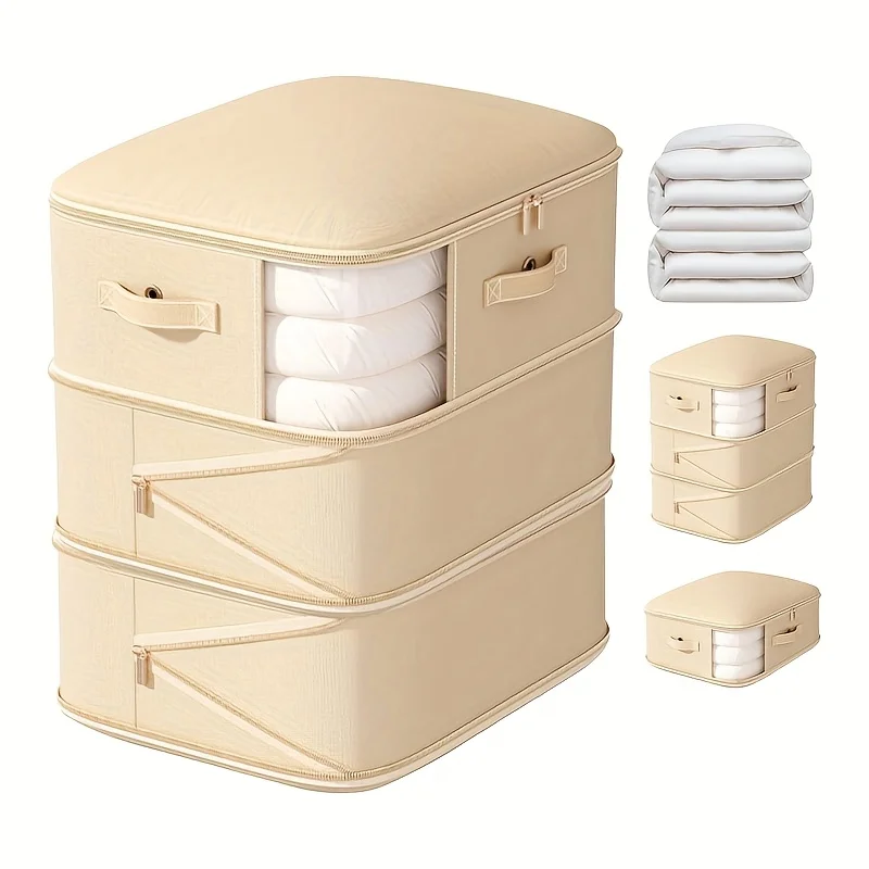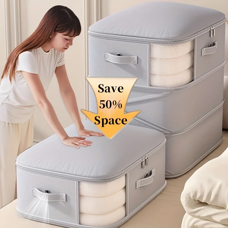 1.Declutter Save Space: Perfect for storing and organizing winter blanket, duvets, king and queen size comforters, sweater, quilts, sheets, baby items etc; Hassle free no vacuum storage that has a big capacity though still compact; Safe to store in Attic or Basement.