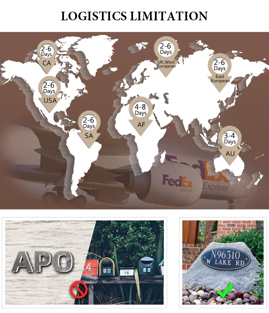 Express Company Doesn't Accept Any Address With P.O box / APO. and should be pay by buyer, it's out of our control, hope you could understand.