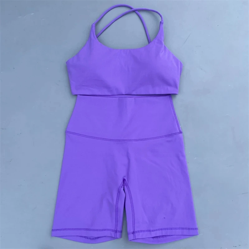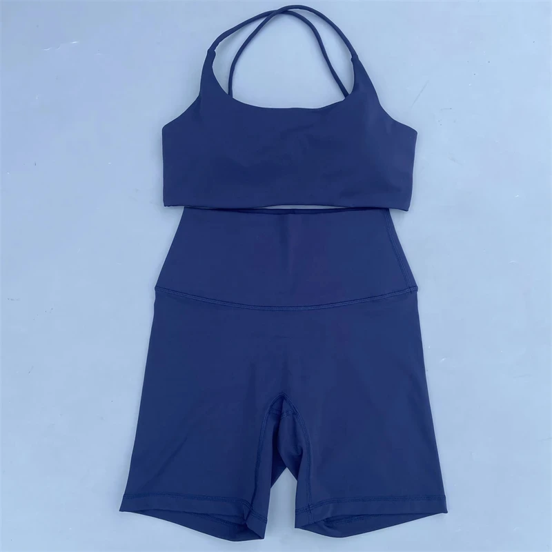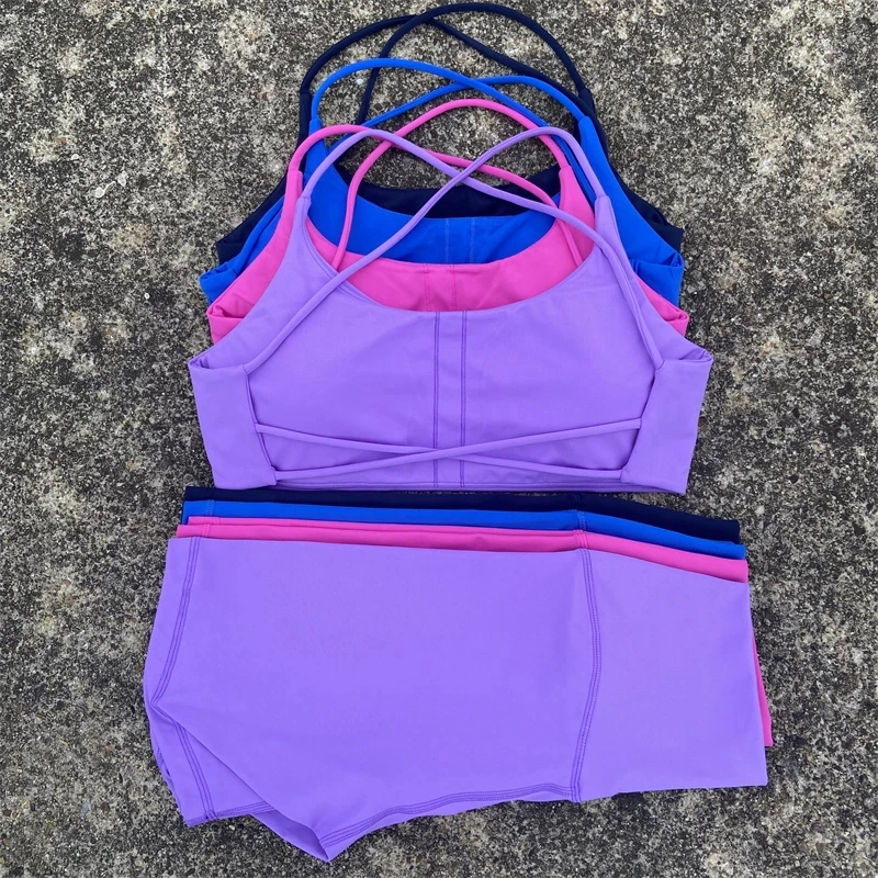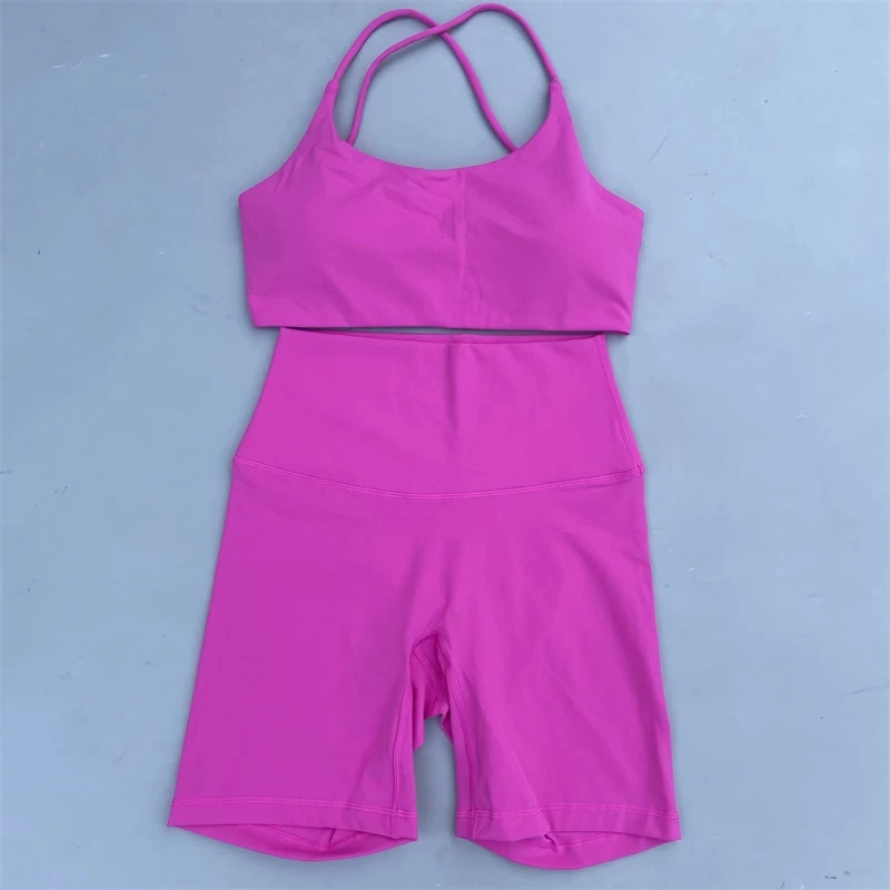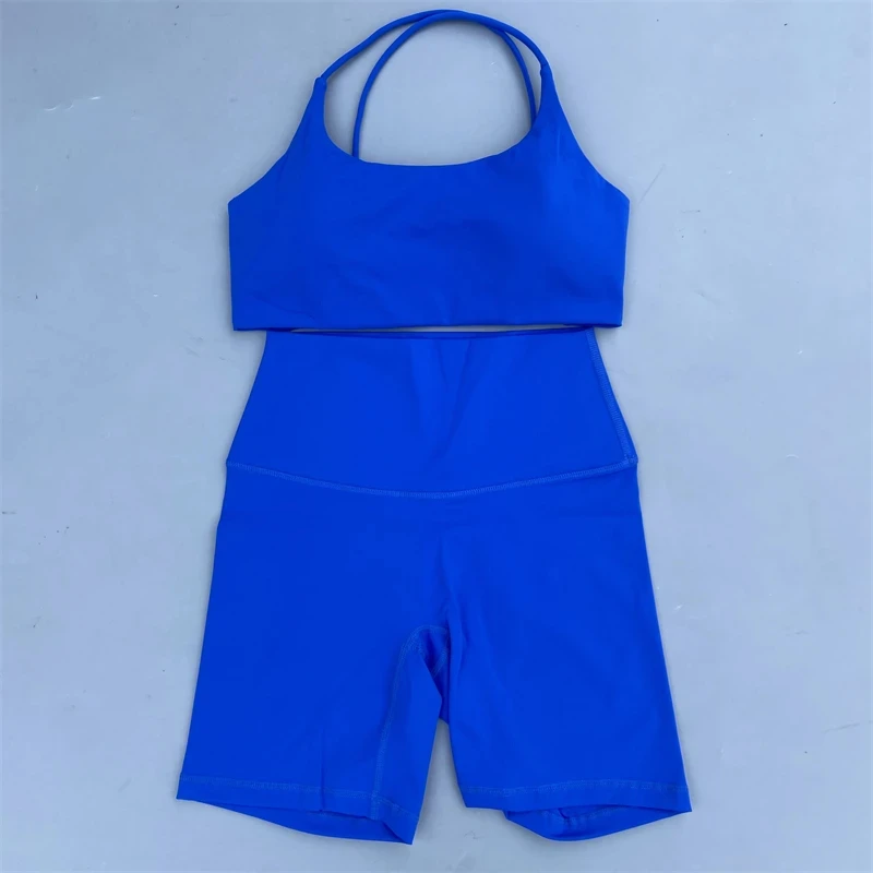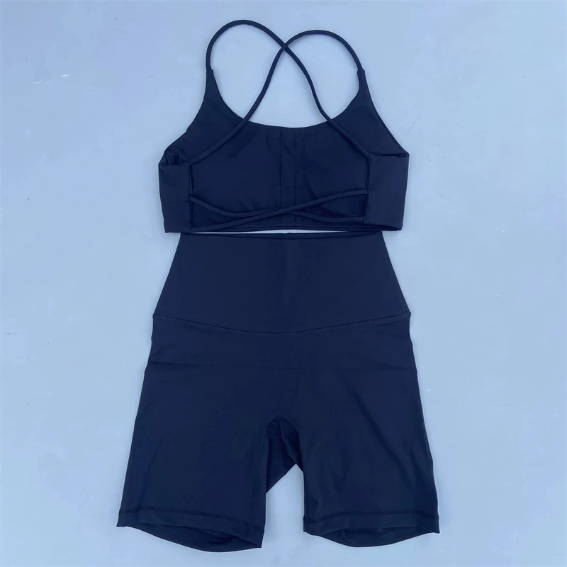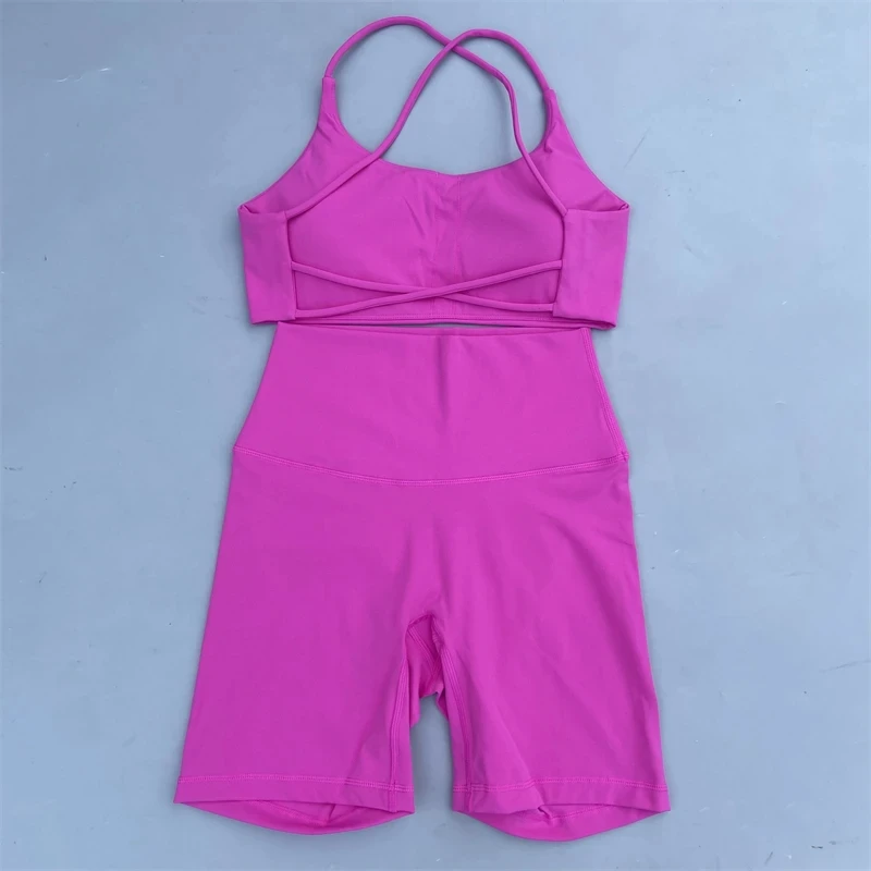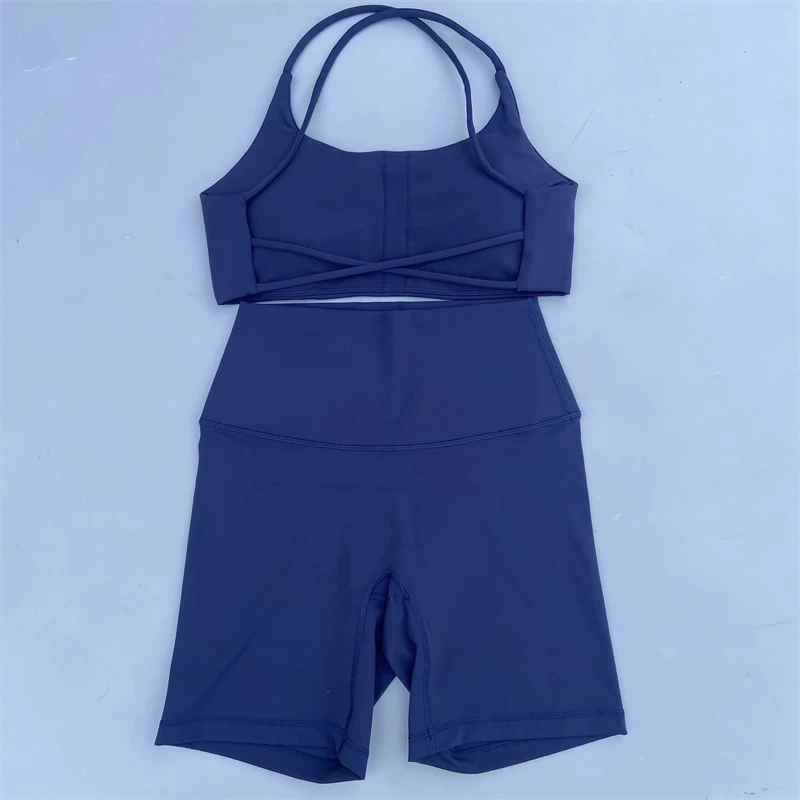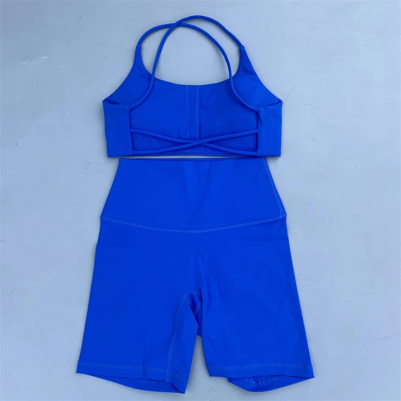 Solid Color Soft Gym Yoga Set Short Legging +Cross Back Sport Bra Tracksuit Women Gym Suit Comprehensive Training Jog Athletic