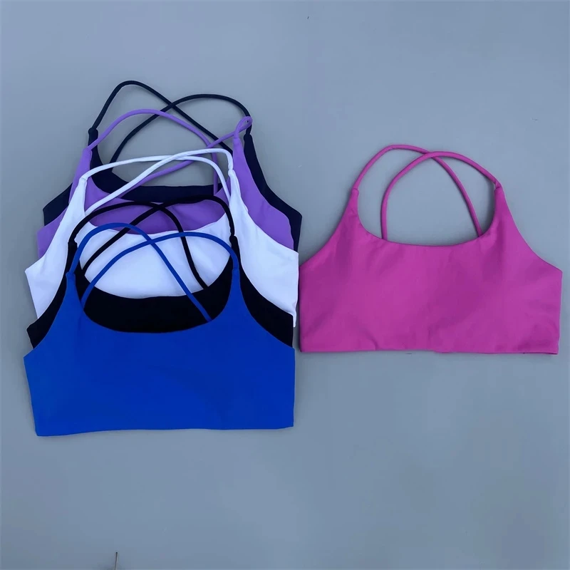 Solid Color Women Cross Back Straps Fitness Bra High Strength Tight Sport Top Comprehensive Gym Yoga Underwear With Chest Pad