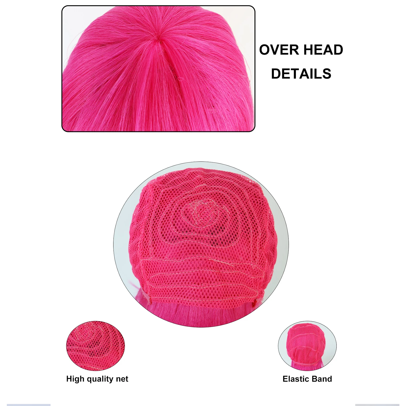 Synthetic 12 Inches Short Pink Cosplay Wig for School Halloween Thanksgiving Day Christmas Costume Accessories