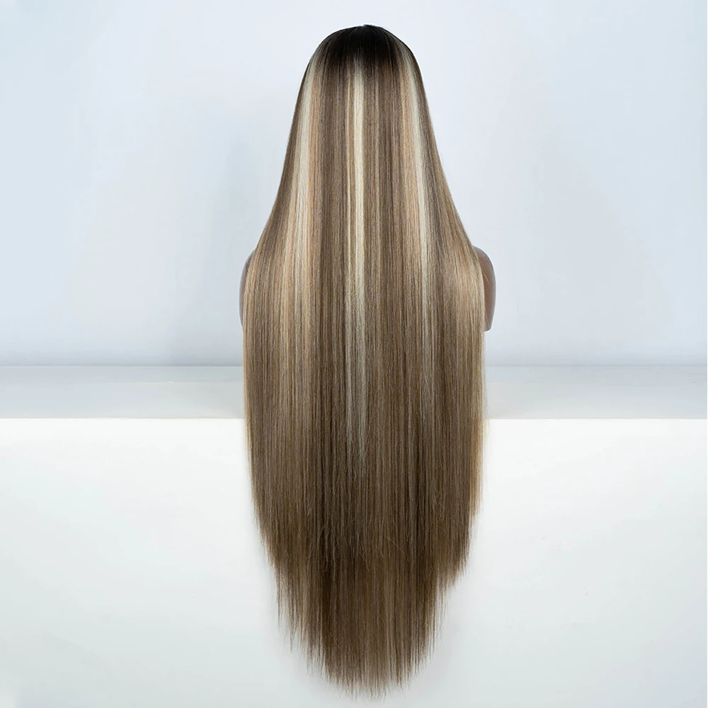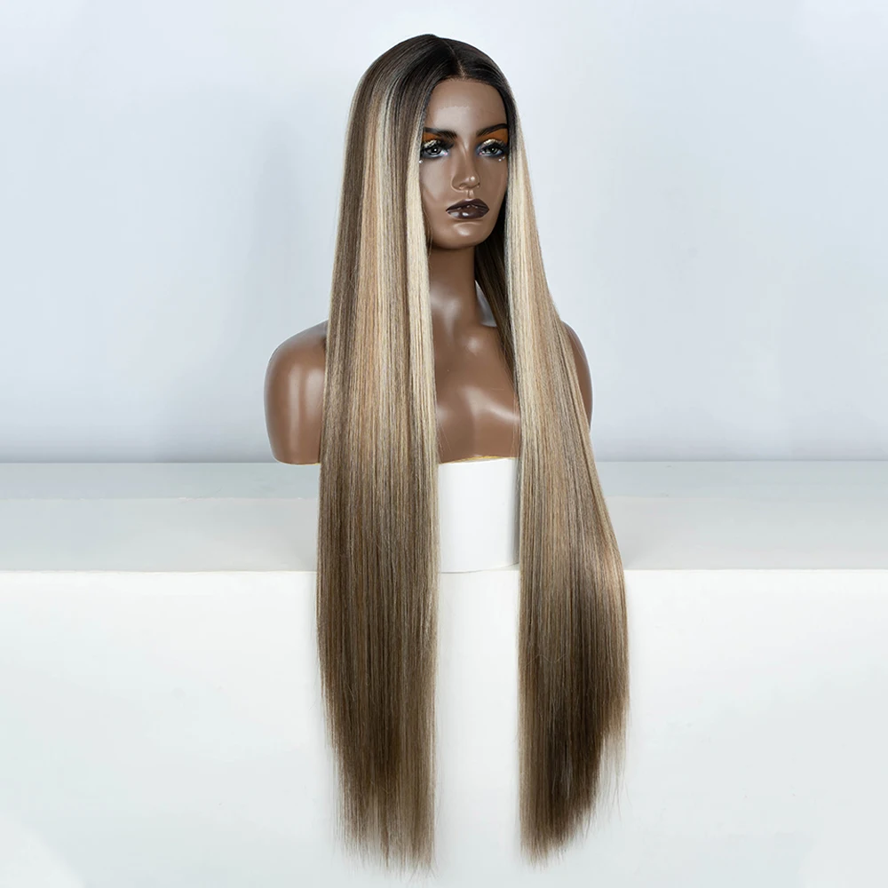 Synthetic Lace Front Wigs Highlight Brwon Blonde Black Wig For Women Long Straight Lace WIg 38Inch Synthetic Heat Resistant Wig