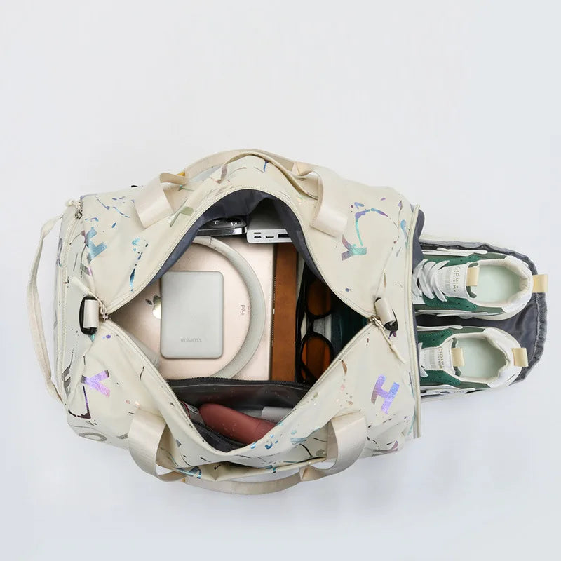 Unisex Graffiti Letter Print Waterproof Gym Yoga Sport Dance Travel Bag Crossbody Deffle Bag Fitness Swimming Wet Dry Storage