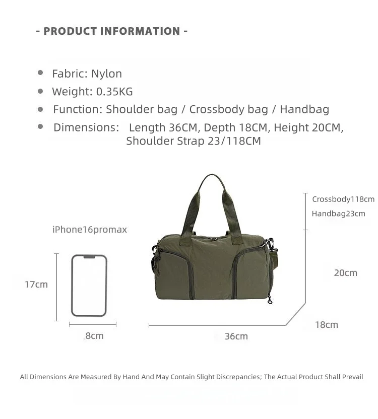 Women's Sports Fitness Bag Large Capacity Handbag Short Trip Travel Bag Commuter Crossbody Bag Breathable Soft Design